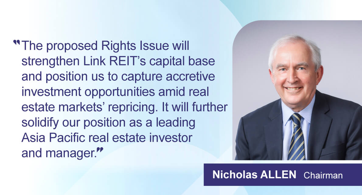 Link REIT is undertaking a 1-for-5 Rights Issue to raise approximately HK$18.8 billion (before expenses) at a Subscription Price of HK$44.2 per Rights Unit.