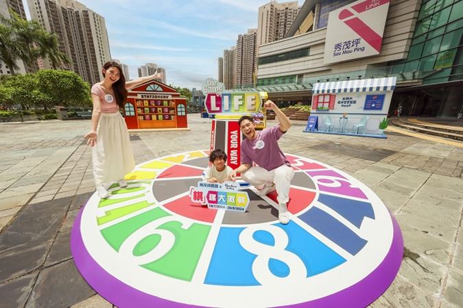 Sau Mau Ping Shopping Centre, in collaboration with Hasbro Gaming, has meticulously crafted a giant Sau Mau Ping-themed version of “The Game of Life”. The outdoor space will be transformed into a "The Game of Life" game scene, featuring a four-metre-wide giant spinning wheel. The game incorporates local information about leisure, dining, and nearby attractions into its elements, allowing participants to learn about the area's offerings from multiple angles. With “Chance” or “Fate” cards, players have the opportunity to win small gifts and discount coupons for selected merchants.