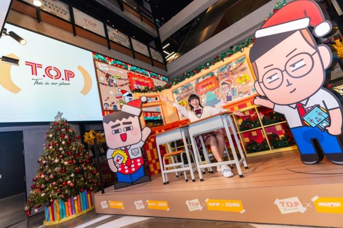 由即日起至2026年1月11日,【有东尼有DD有T.O.P – Gen x - α 圣诞联欢会】正式登场。两位“超成熟学生”将以校服造型现身,邀请Gen X至Gen α、不同背景的朋友,一同参与这场跨世代圣诞派对。商场各楼层化身“T.O.P中学”,并设有四大搞怪打卡位,其中必到的是首度亮相3米高的“圣诞仙人”装置,记得准备士的糖参拜圣诞仙人保佑交换礼物运。