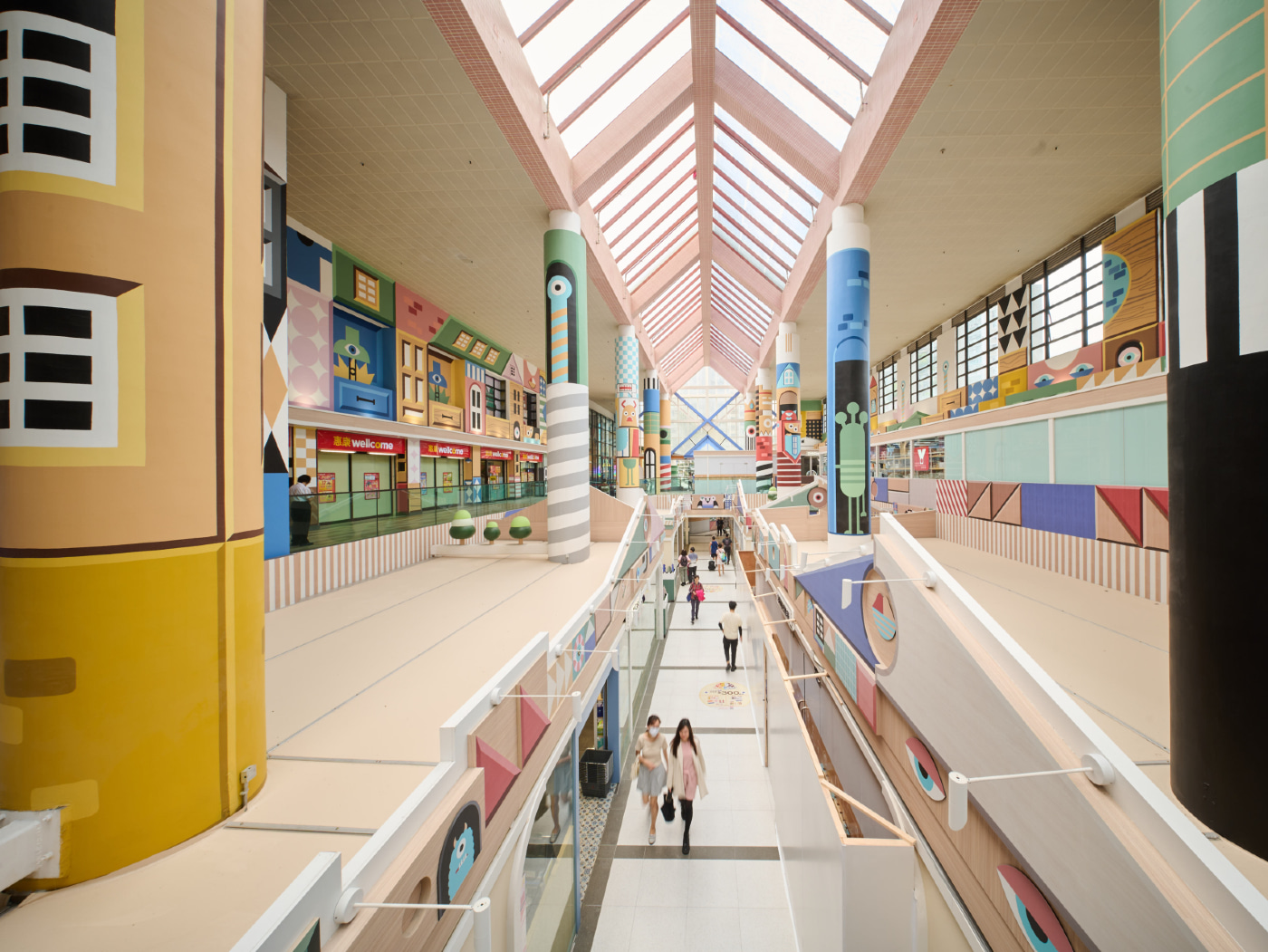 位於屯門的建生商場經過資產提升後,誕生一個彩色夢幻的全新面貌。