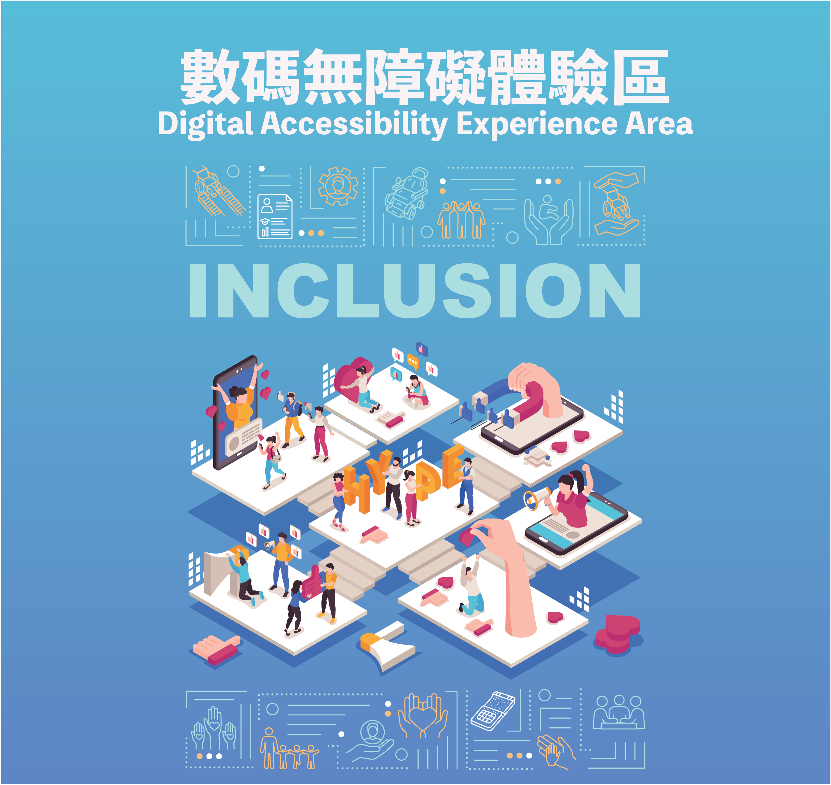 活動提供數碼無障礙體驗遊戲攤位,讓大眾感受視障或聽障人士在瀏覽缺乏「無障礙設計」的網頁時所面對的困難和不便。
