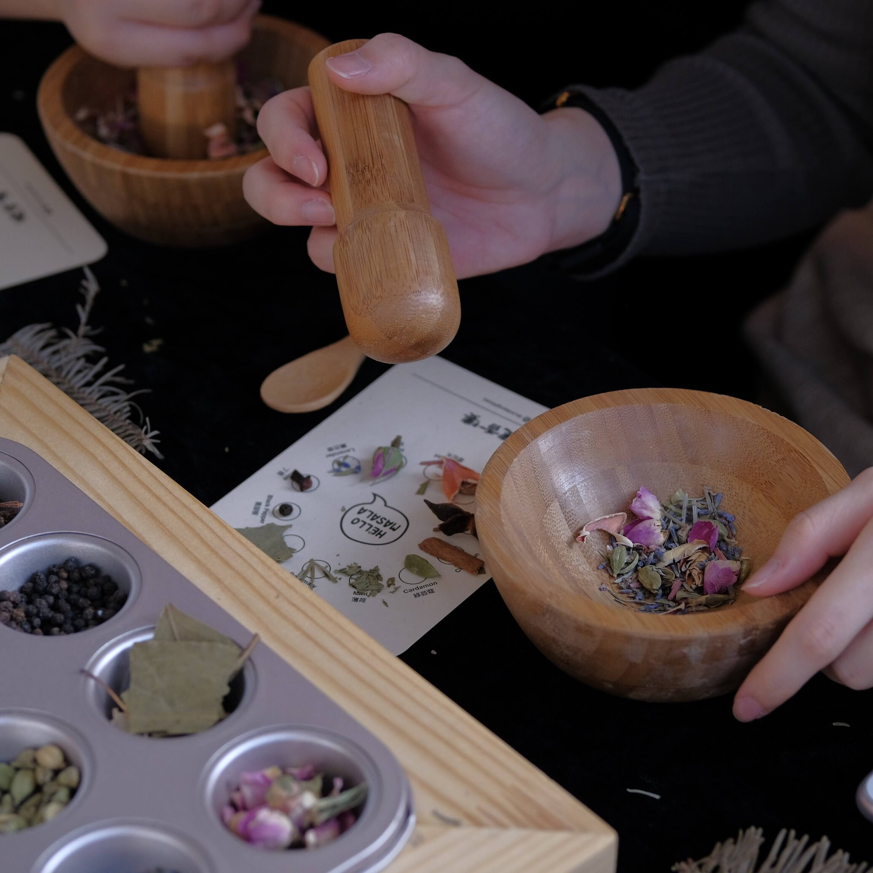 參加者將了解世界各地不同的香料,包括其起源、用途及文化,並在現場觸摸和感受各式香料的香味,以各種天然香草,自行調配及製作獨一無二的香薰包或驅蚊包!